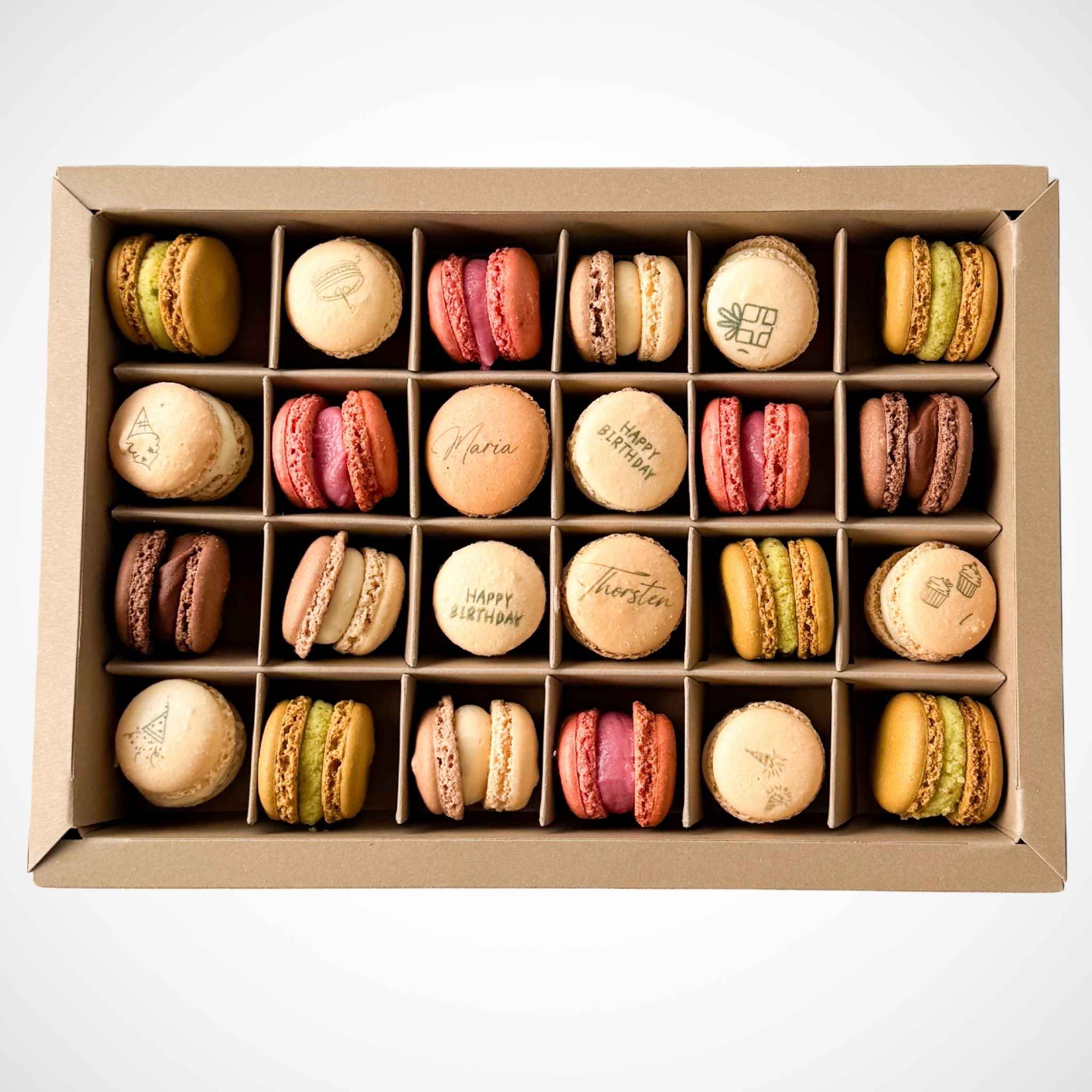 Verleihen Sie Ihrem Unternehmen das gewisse Etwas mit unseren einzigartigen Macarons, die Ihr Firmenlogo, Ihr Branding oder eine besondere Botschaft tragen. Unsere edlen Macarons sind nicht nur ein Genuss für den Gaumen, sondern auch ein optisches Highlight, das garantiert in Erinnerung bleibt.