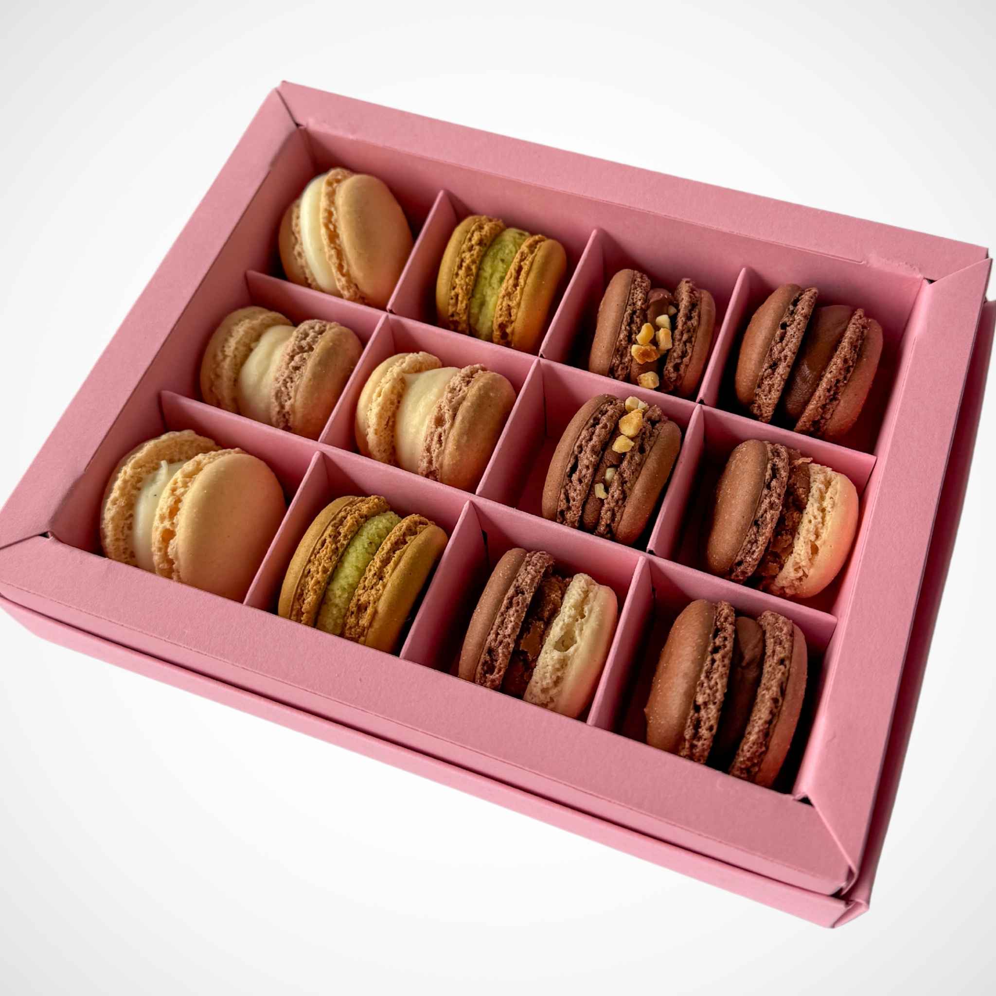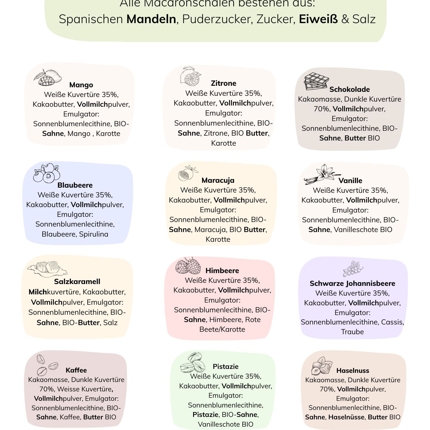 Du entscheidest, welche Sorten in deine Box kommen! Wähle aus unseren frischen, handgemachten Macarons – perfekt gemischt ganz nach deinem Geschmack. Ob fruchtig, schokoladig oder eine bunte Mischung – deine Box wird so einzigartig wie du.