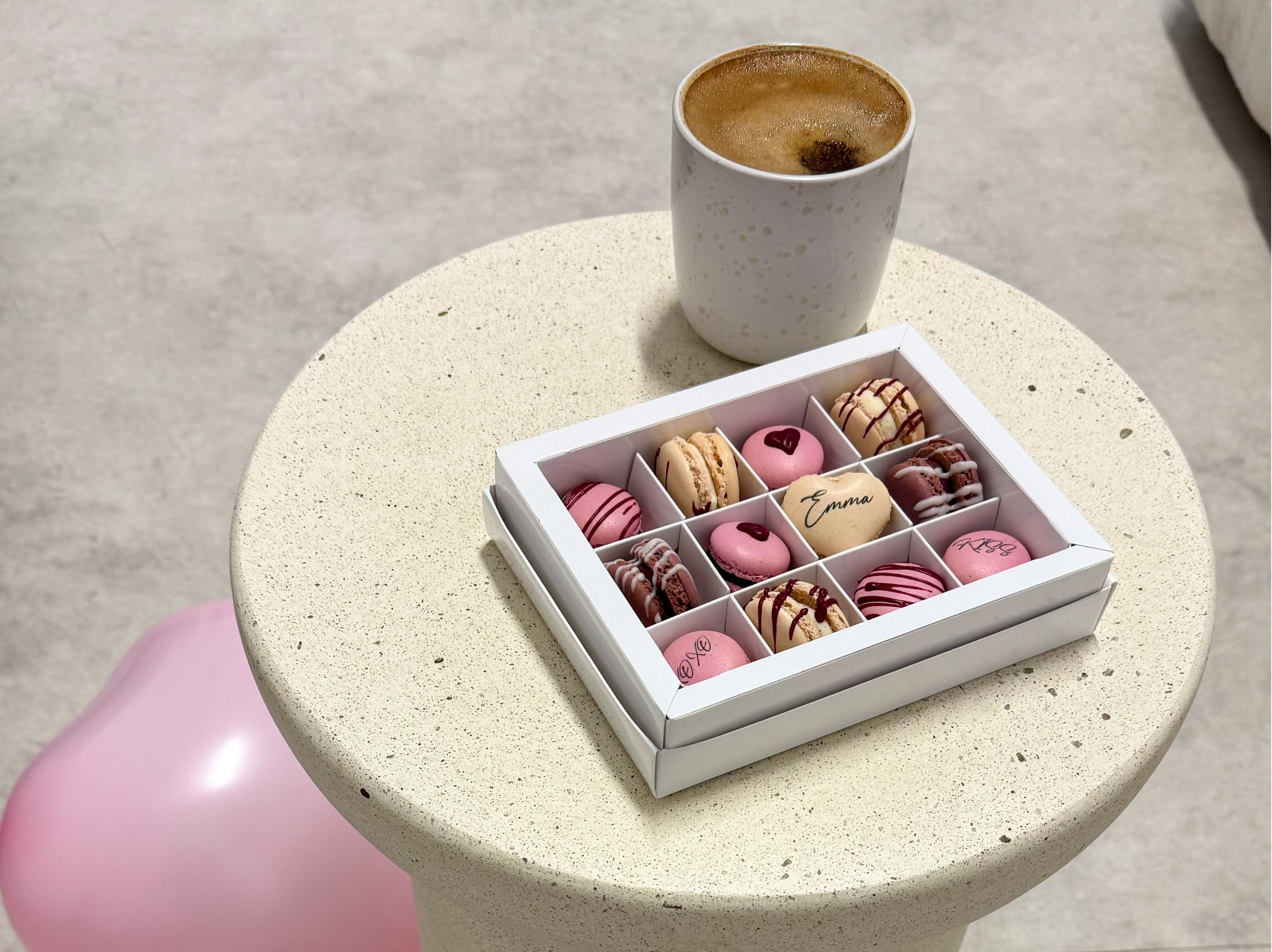 Gerade wenn du ein passendes Valentinstag Geschenk für ihn suchst, sind Macarons eine elegante Alternative zu klassischen Schoko-Pralinen. Dank ihrer feinen Konsistenz und unverwechselbaren Aromen kommen sie aber genauso gut bei Frauen an. Auch als Valentinstag Geschenk Mann oder als Präsent für besondere Valentinstag Geschenkideen machen unsere liebevoll gestalteten Macarons immer eine hervorragende Figur.