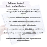 Jede Macaronbox wird von Hand gepackt und mit einer eleganten Schleife versehen – perfekt als Geschenk. Um sicherzustellen, dass Überraschungen gelingen, legen wir niemals eine Rechnung in den Kühlversand, auch wenn die Lieferadresse der Rechnungsadresse entspricht. Für eine persönliche Note kannst du außerdem ein Macaron mit einem Namen oder einer Nachricht beschriften lassen. So wird jede Box zu einem individuellen Highlight, das Eindruck hinterlässt!